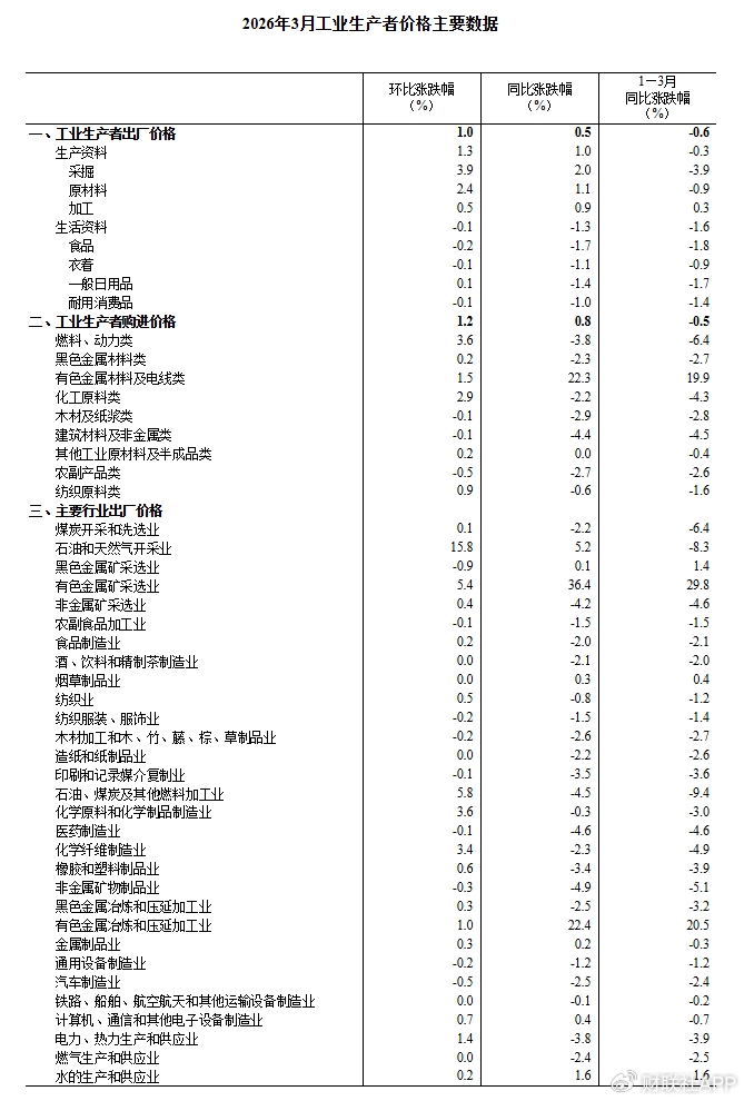 海量资讯、精准解读,尽在新浪财经APP 2026年3月份工业生产者出厂价格同比由降转涨 环比涨幅扩大