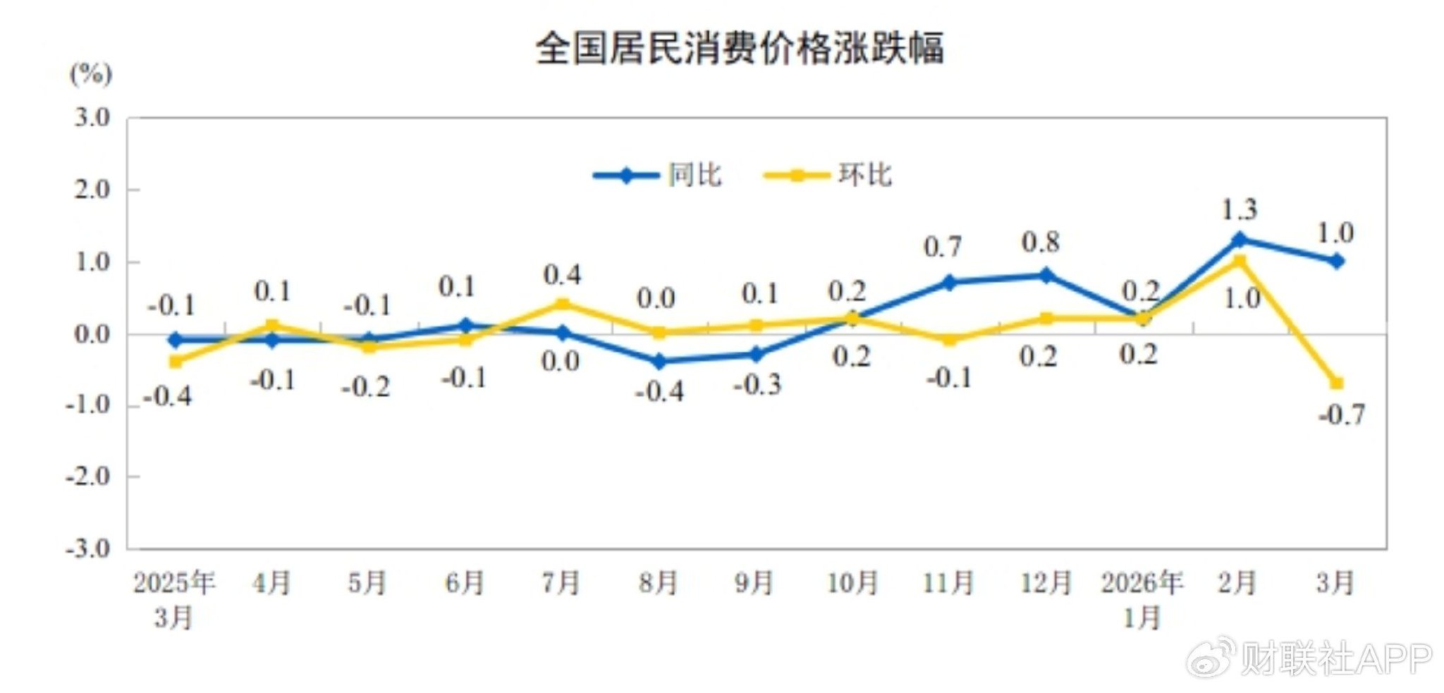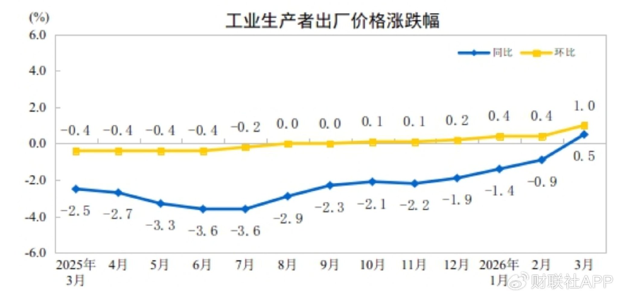 2026年3月份CPI同比上涨 PPI同比由降转涨